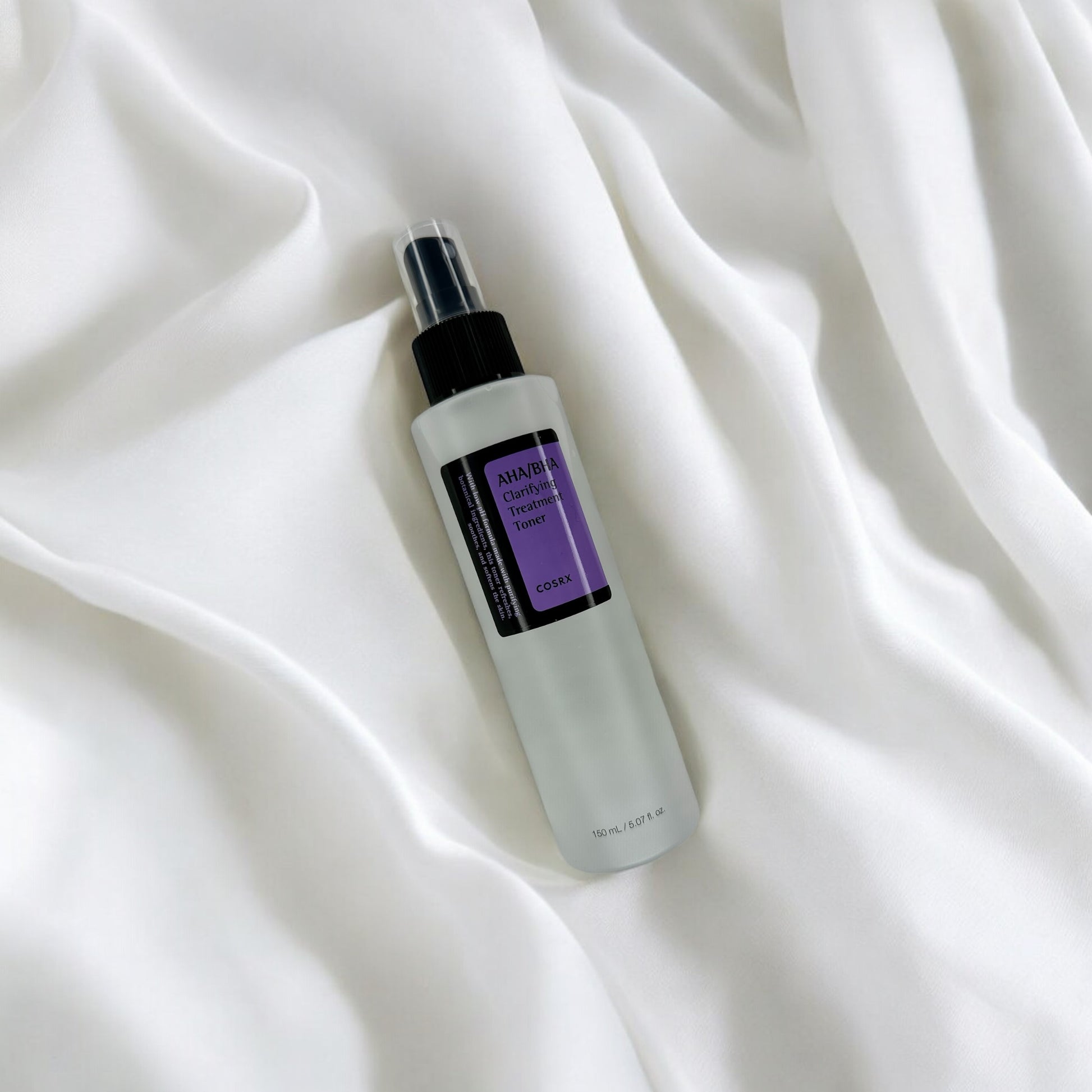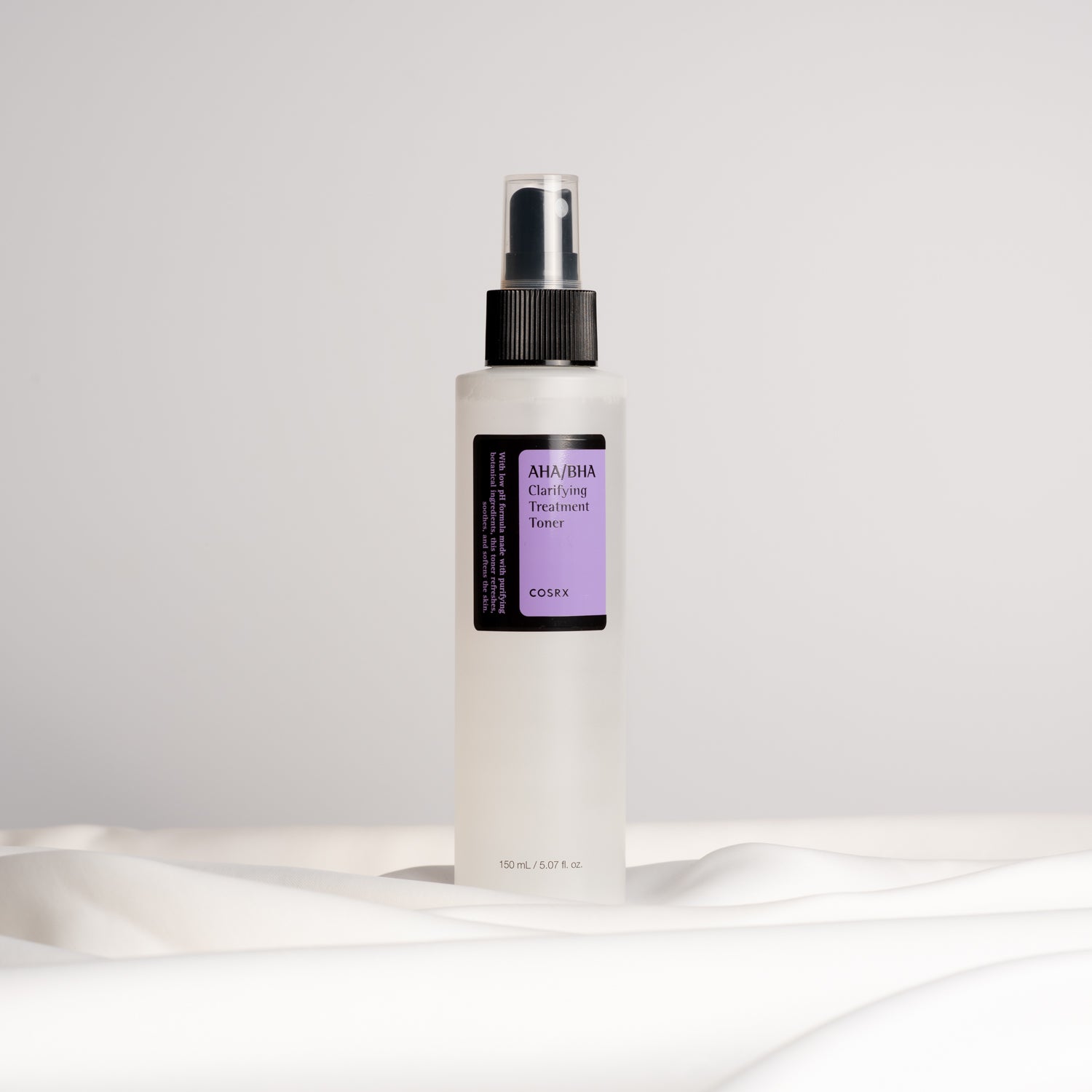 AHA/BHA Clarifying Treatment Toner od značky COSRX je čistící toner s nízkým pH. Díky kombinaci kyselin AHA a BHA (kyselina salicylová) jemně odstraňuje odumřelé kožní buňky, napomáhá vyvažovat tvorbu kožního mazu a zanechává pleť čistou a hladkou. Spolu s panthenolem je pokožka hydratovaná, sjednocená a bez pocitu podráždění. Vhodné zejména pro smíšenou a mastnou pleť se sklonem k akné a černým tečkám.