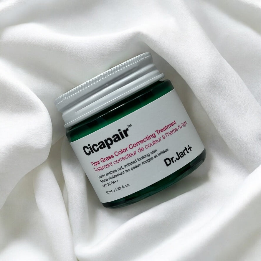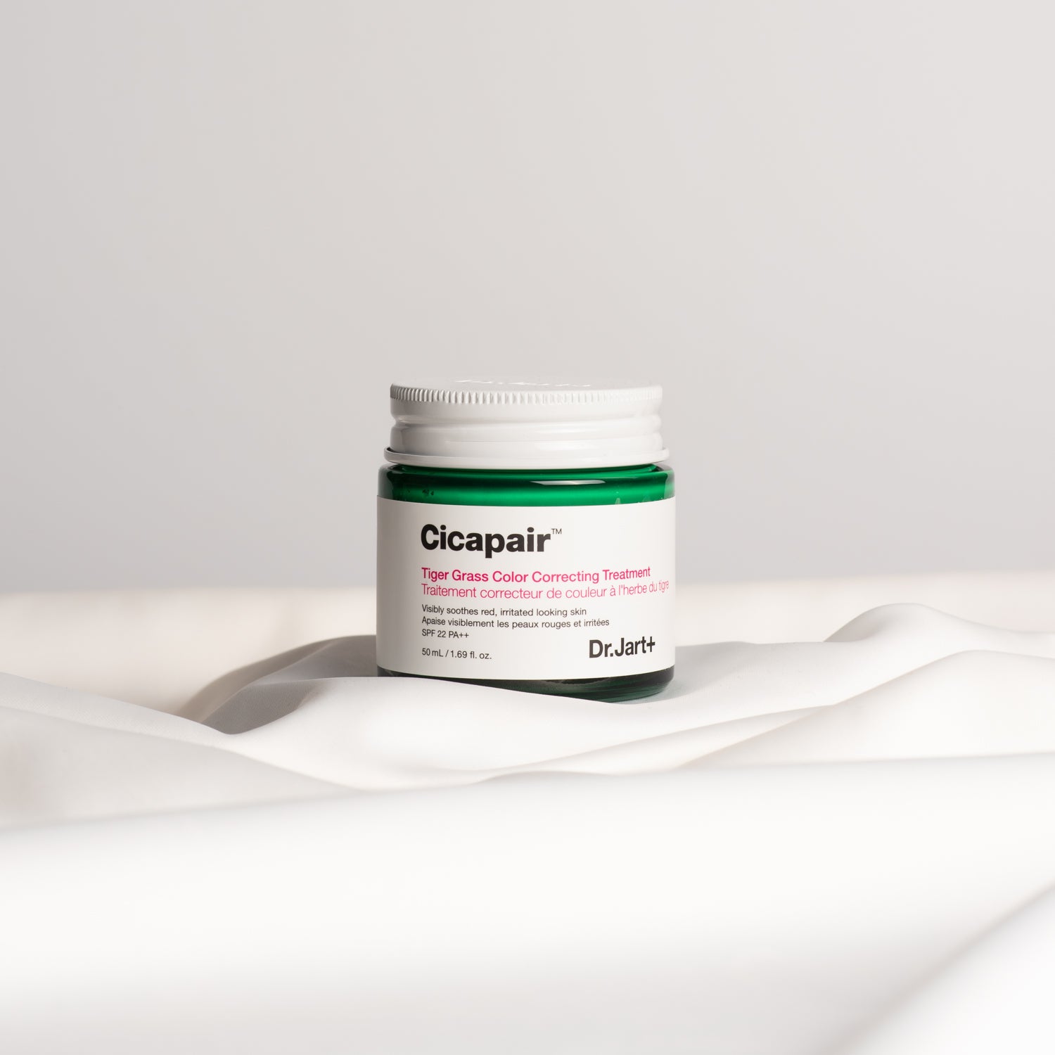 Tiger Grass Color Correcting Treatment od značky Dr.Jart+ je ideálním řešením pro citlivou a podrážděnou pokožku, která touží po sjednocení. Lehce ochranný krém obsahuje výtažek z pupečníku asijského, který zklidňuje, redukuje začervenání a pomáhá hojit drobné ranky. Navíc také obsahuje rozjasňující a sjednocující niacinamid a madecassoside, což je složka získávána z pupečníku asijského. Stimuluje kolagen, posiluje kožní bariéru pleti a pomáhá zklidnit citlivou pokožku. Produkt je vhodný pro všechny typy pleti, zejména pro citlivou.