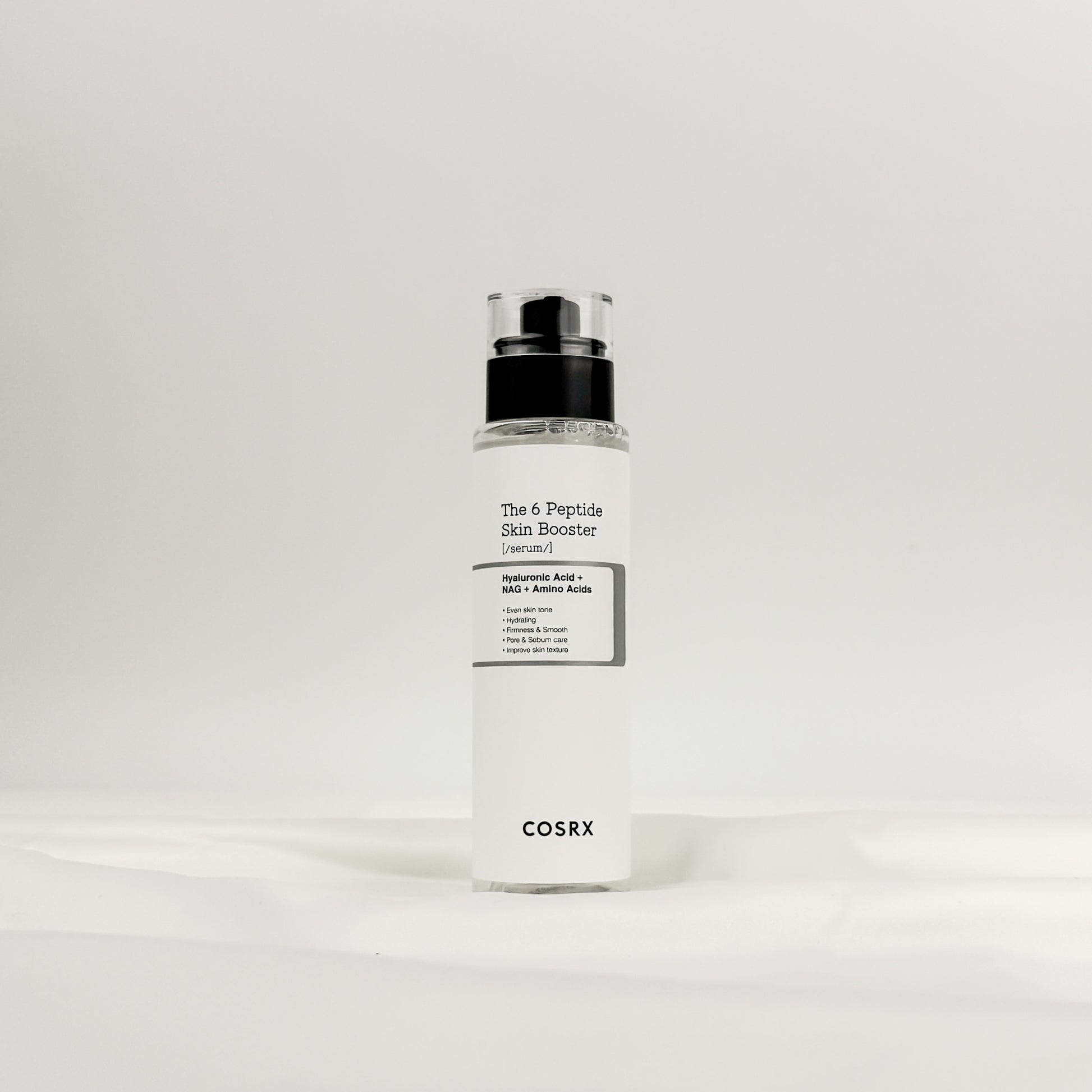 The 6 Peptide Skin Booster Serum od značky COSRX je lehké a dobře se vstřebávající sérum, které je přímo nabité peptidy. Peptidy jsou malé molekuly, které pronikají hluboko do vrstev pleti, kde podporují tvorbu kolagenu a zajišťují tak pružnost, hladkou texturu a regeneraci. Další složkou je kyselina hyaluronová, ta hloubkově hydratuje, vyhlazuje jemné vrásky a zamezuje vysoušení pokožky. A aminokyseliny jsou přirození hydratační hrdinové, kteří udržují pleť vyživenou, ale i chráněnou a zklidněnou. The 6 Peptide Skin Booster Serum není jen o hydrataci, ale o komplexní péči pro všechny, kteří touží po zdravém, mladistvém a zářivém vzhledu. Produkt je vhodný pro všechny typy pleti.