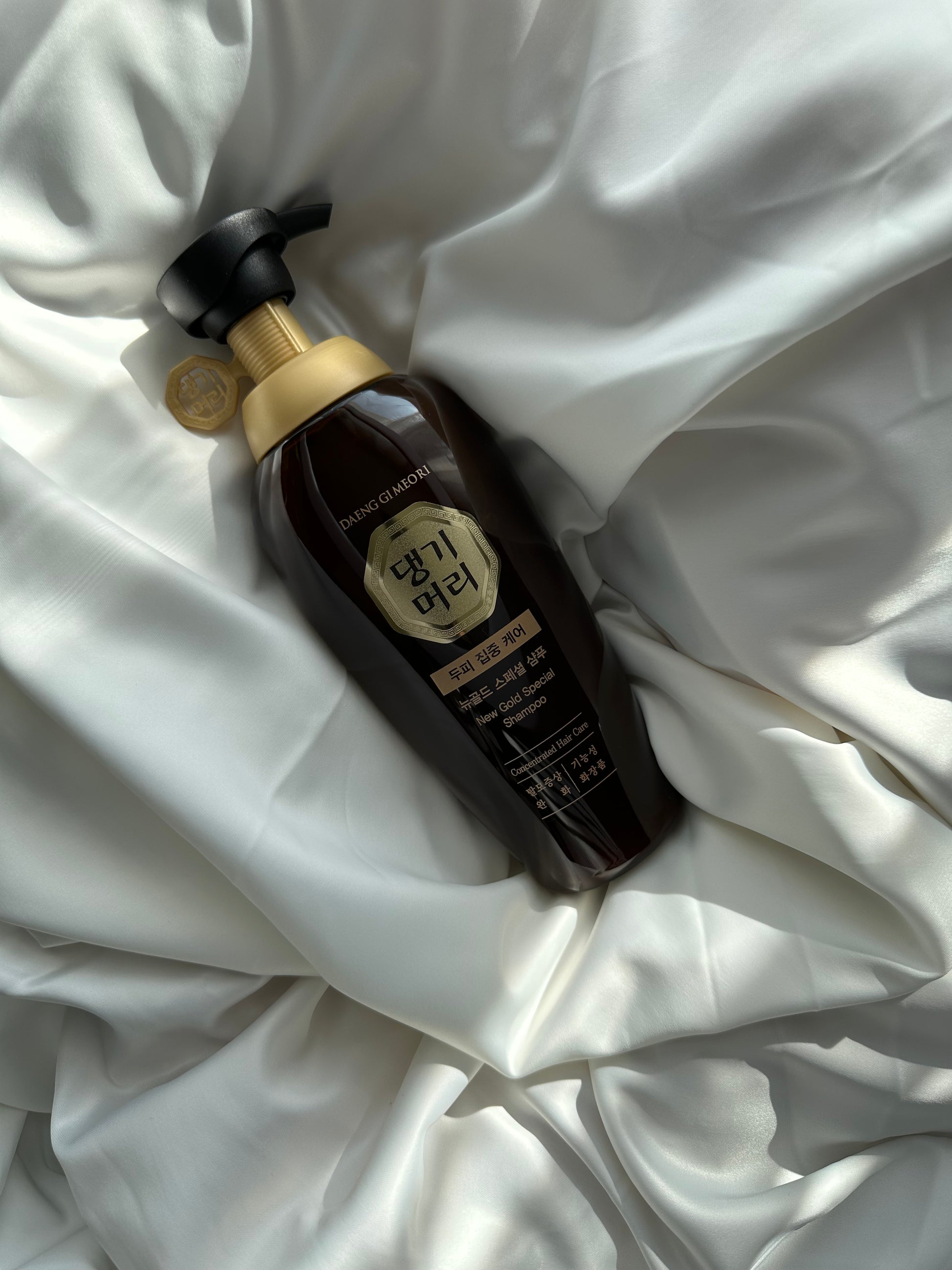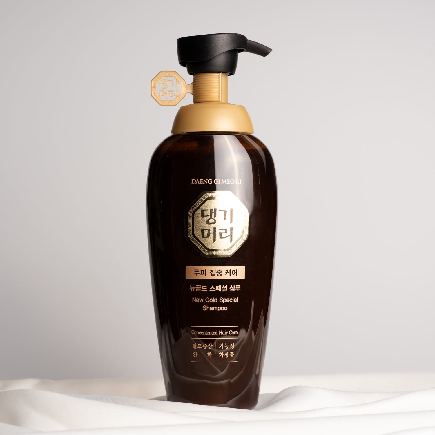 New Gold Special Shampoo od Daeng Gi Meo Ri je exkluzivní šampon bohatý na ženšen, zelený čaj a lékořici, které společně pracují na posílení, čistotě a obnově vašich vlasů. Ženšen, tradiční léčivý bylinný extrakt, posiluje vlasové folikuly a podporuje zdravý růst vlasů. Dodává vlasům sílu a vitalitu, zlepšuje jejich texturu a zabraňuje lámání. Zelený čaj obsahuje antioxidanty, které chrání vlasy před škodlivými účinky prostředí a volnými radikály. Reguluje tvorbu mazu pokožky hlavy, což podporuje růst silných a zdravých vlasů. Lékořice má protizánětlivé vlastnosti a pomáhá zklidnit podrážděnou pokožku hlavy, hydratuje, zabraňuje tvorbě lupů a zanechává vlasy hebké a lesklé. S New Gold Special Shampoo získají vaše vlasy potřebnou vitalitu, čistotu a zdraví.