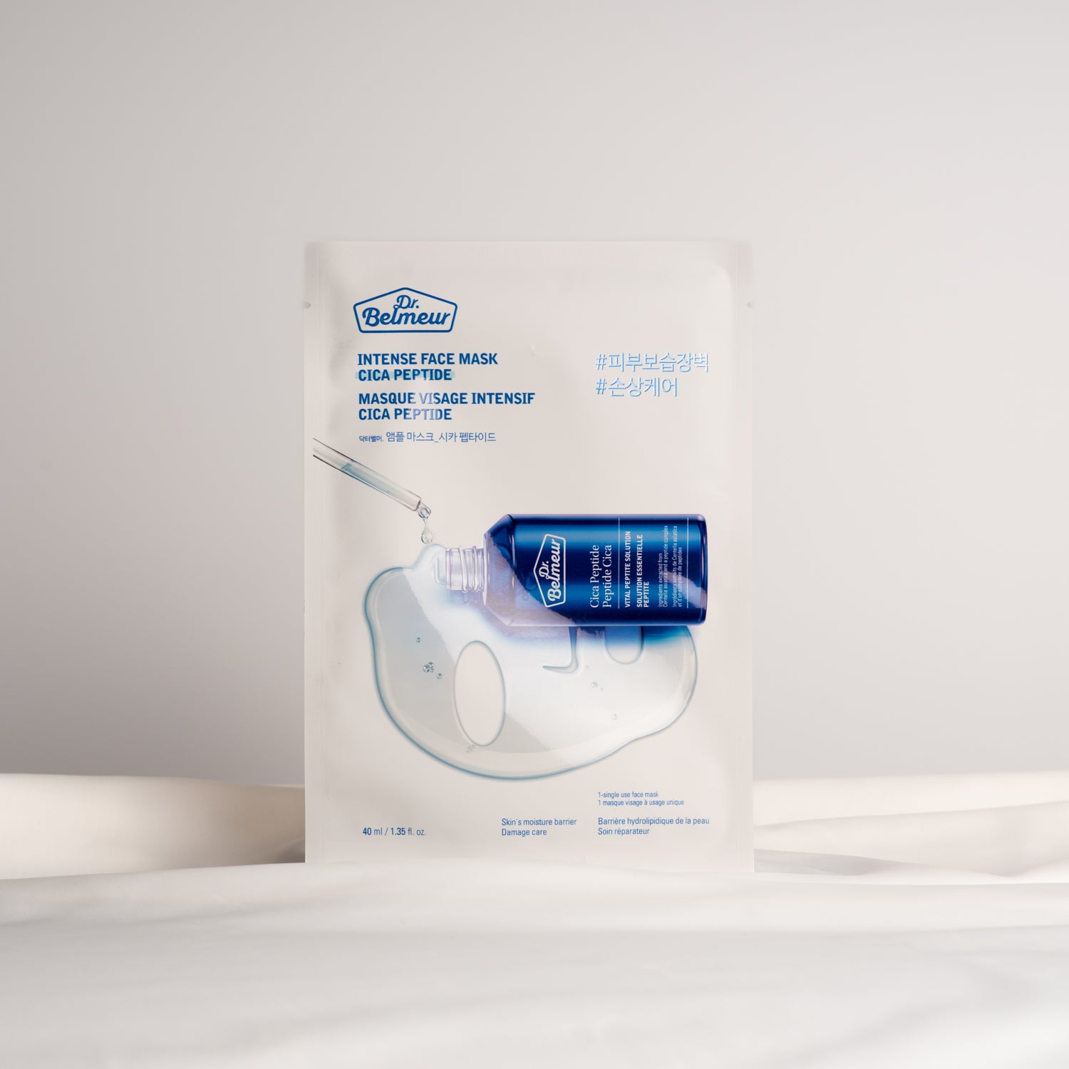 Dr. Belmeur Intense Face Mask Cica Peptide od THE FACE SHOP je vyživující a zklidňující pleťová maska, která pokožku zpevní již během 15 minut. Obsahuje peptidy, které zpomalují proces stárnutí a regenerují, pupečník asijský, který podporuje tvorbu kolagenu a zklidňuje zarudlou pleť, a ceramidy, které obnovují poškozenou bariéru pleti a udržují tak optimální hladinu hydratace. Produkt je vhodný pro všechny typy pleti, včetně citlivé.
