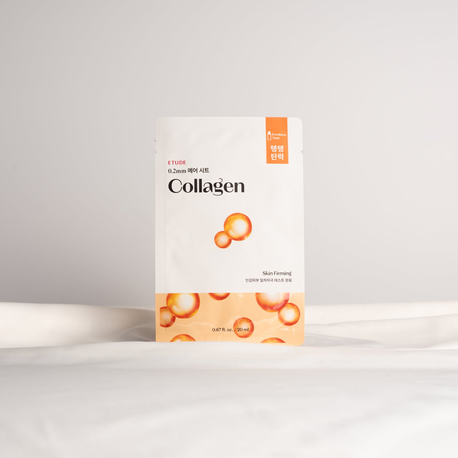 Therapy Air Mask Collagen od Etude je příjemná omlazující maska s vysokou koncentrací omlazujícího kolagenu. Kolagen dodává pleti hydrataci, vyhlazuje jemné vrásky a zpevňuje. Maska také obsahuje tea tree, který pomáhá léčit drobné záněty jako je akné, a pupečník asijský, který zklidňuje a pomáhá v regeneraci pokožky. Produkt je vhodný pro všechny typy pleti.