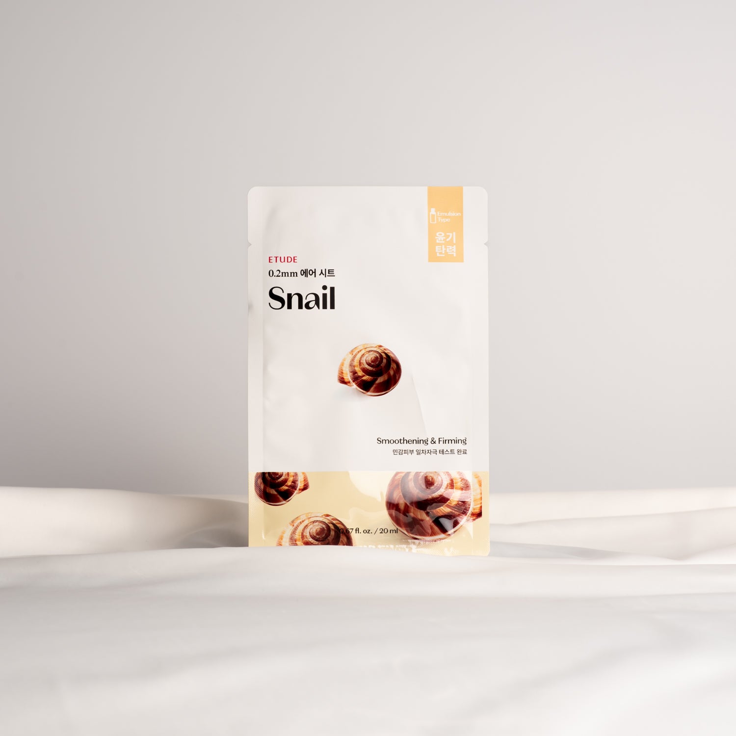 Therapy Air Mask Snail od Etude je maska s velmi vysoce koncentrovaným šnečím extraktem. Regeneruje, podporuje tvorbu kolagenu a pomáhá hydratovat suchou a zralou pleť. Obsahuje také extrakt z mandarinky, která zpomaluje proces stárnutí a sjednocuje tón, a pupečník asijský, který pokožku zklidňuje a chrání před tvorbou akné. Produkt je vhodný pro všechny typy pleti.