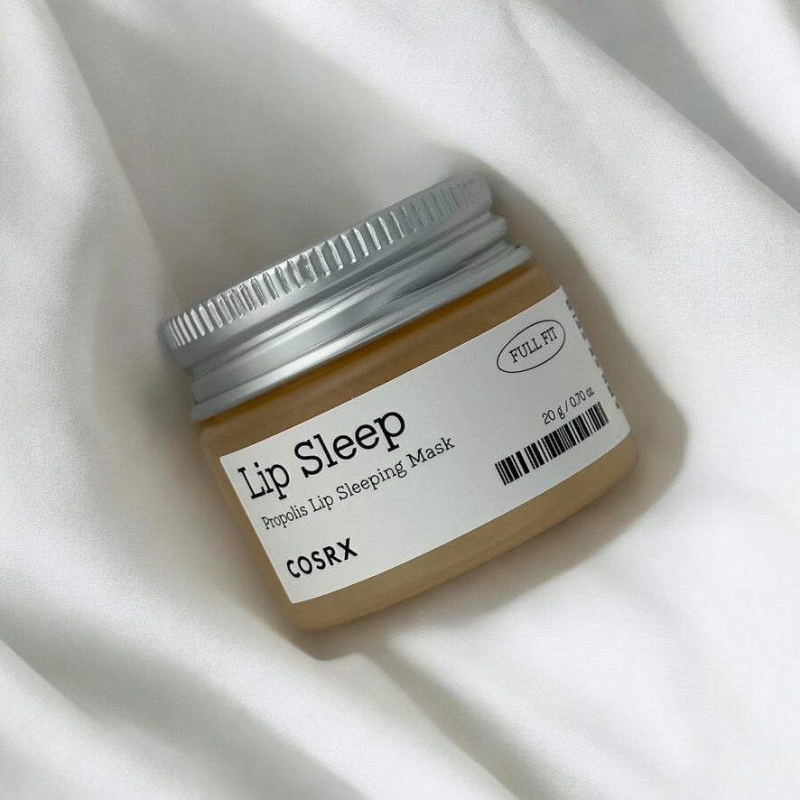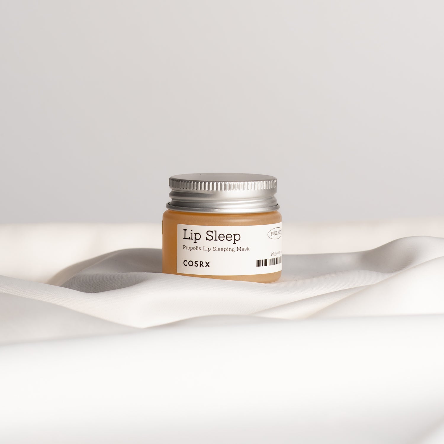 Full Fit Propolis Lip Sleeping Mask od značky COSRX je noční maska na rty, která během vašeho spánku rtům dodává intenzivní hydrataci, aby byly hladké a plné. Obsahuje extrakt z medu, který pomáhá zklidňovat a hydratovat pokožku rtů. Propolis poskytuje regeneraci a chrání pokožku před vnějšími vlivy. A slunečnicový olej zabraňuje vysoušení rtů a zanechává je vyživené. Použitím této masky budou vaše rty každé ráno hebké, hydratované a plné života.