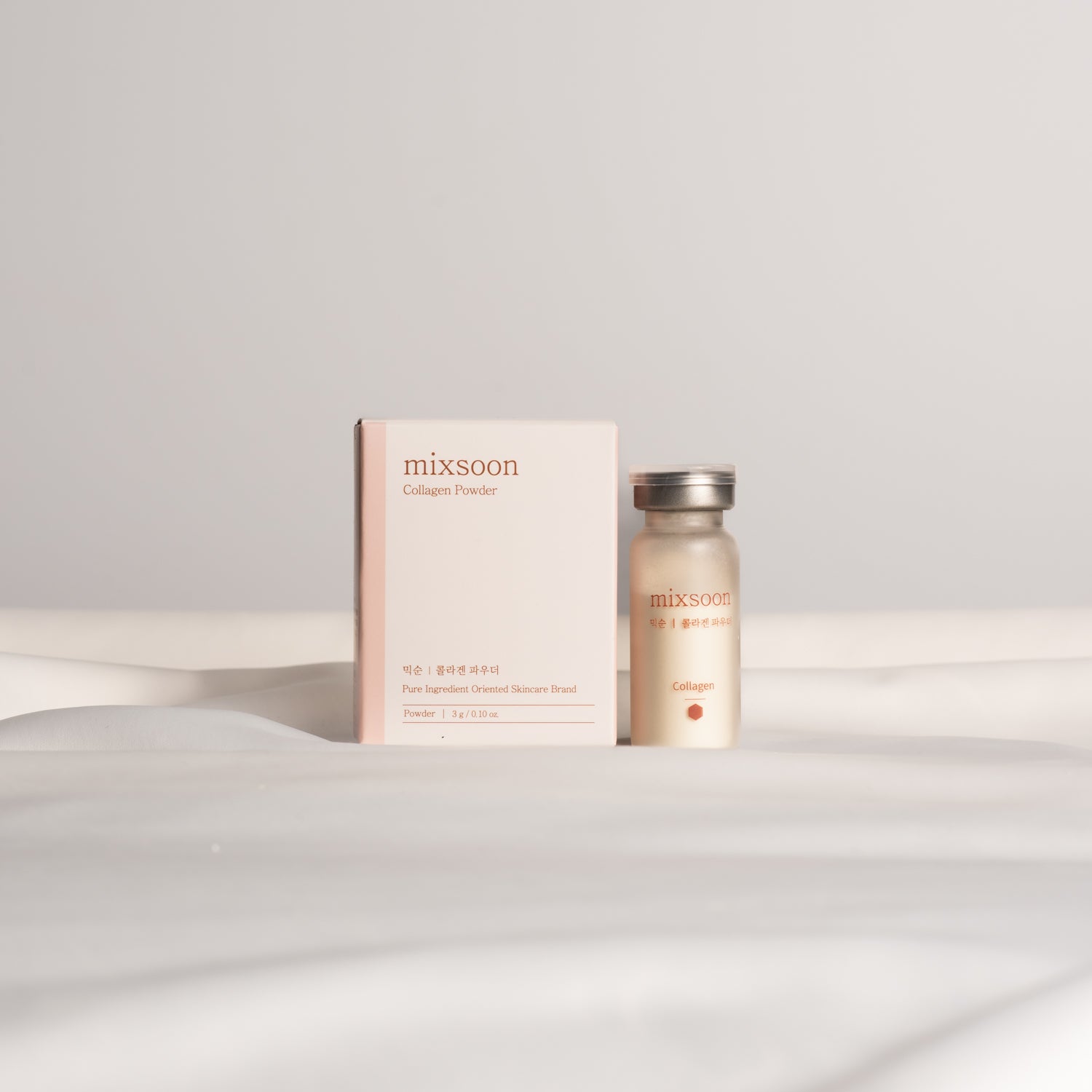 Collagen Powder od mixsoon je hydrolyzovaný kolagen, který dodá každému vašemu oblíbenému produktu něco navíc. Kolagen se v naší pokožce přirozeně vyskytuje a během stárnutí jeho produkce klesá. Zajišťuje pružnost, hydrataci a mladistvý vzhled. Stačí smíchat malé množství prášku spolu s vaším oblíbeným produktem a pleť bude opět hydratovaná, sjednocená a vyhlazená. Nikdy není pozdě dodat pokožce potřebnou výživu a udržovat ji tak mladistvou a zářivou! Produkt je vhodný pro všechny typy pleti.