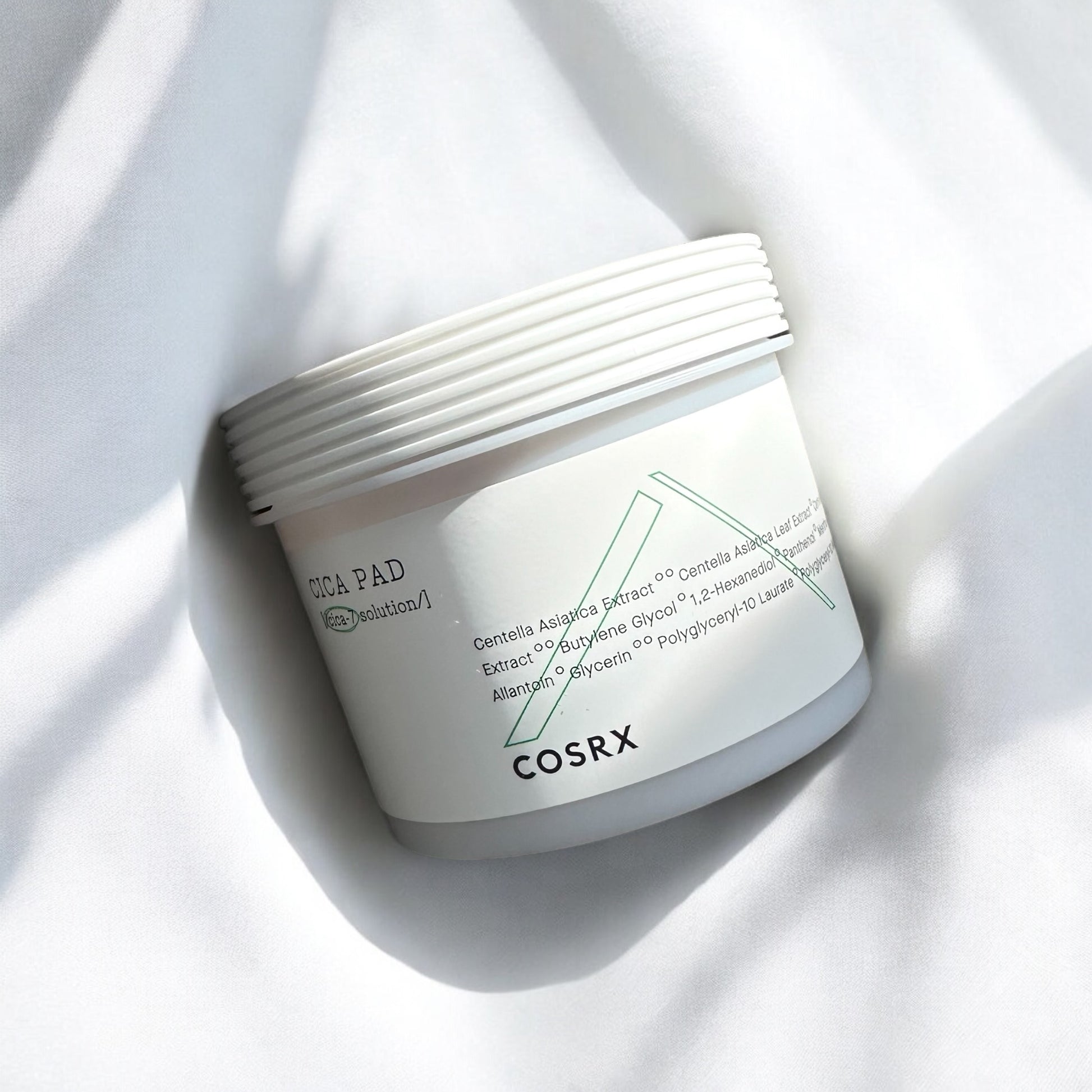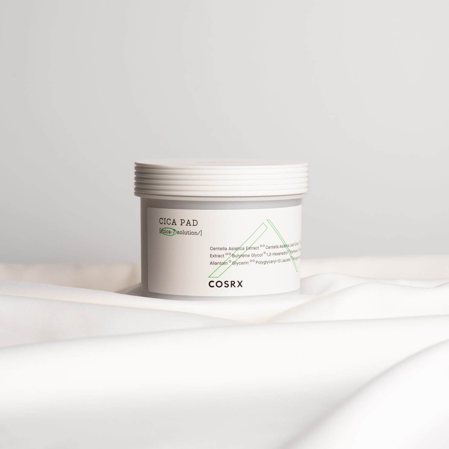 Pure Fit Cica Pad od značky COSRX je revoluční produkt se 7 výtažky z pupečníku asijského (CICA - 7), který pomáhá zklidnit podrážděnou pleť a zároveň ji připravit na aplikaci dalších produktů. Tyto předem nasycené jednorázové tamponky obsahují účinné složky jako je kyselina hyaluronová, která hydratuje a zjemňuje, a panthenol, který zklidňuje a svými vlastnostmi posiluje kožní bariéru. Polštářky jsou navíc multifunkční, nejsou pouze tonerem, ale lze je použít jako zklidňující a hydratační masku. Produkt je vhodný pro všechny typy pleti.
