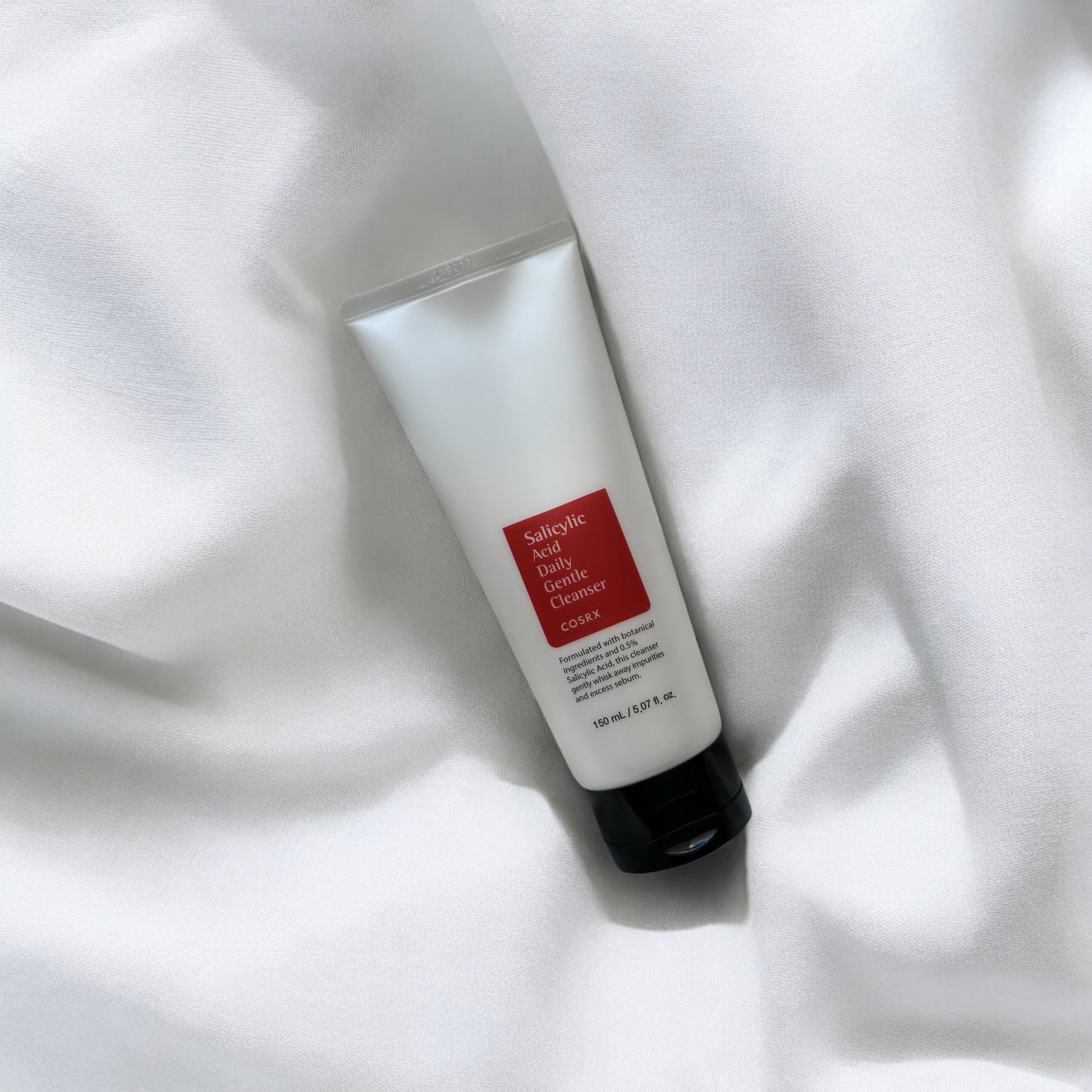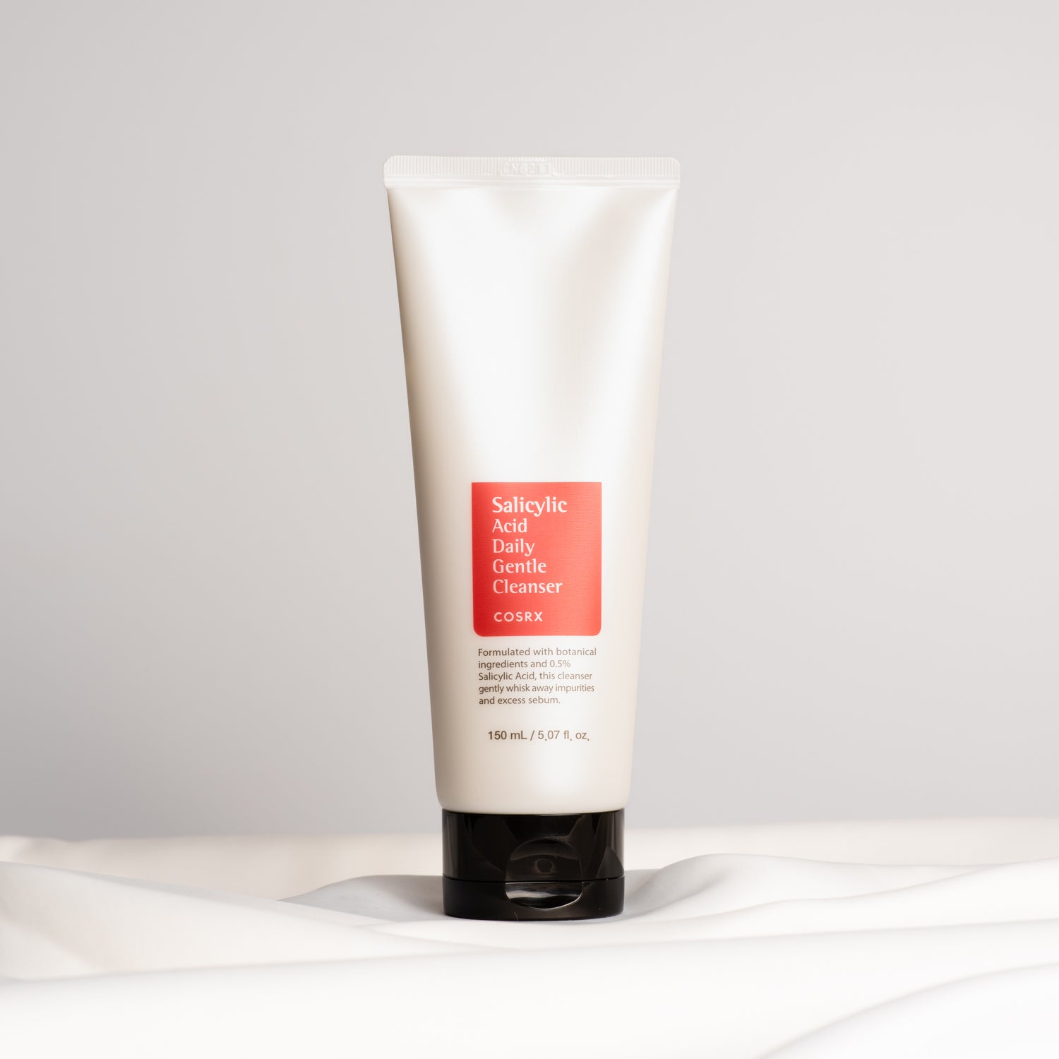 Salicylic Acid Daily Gentle Cleanser od značky COSRX je jemný pěnový gel, který účinně čistí pokožku. Obsahuje kyselinu salicylovou (BHA), která pomáhá odbourávat nečistoty a minimalizovat póry. Gel obsahuje také glycerin, který pleť hydratuje a zvlhčuje, zatímco tea tree olej má antiseptické vlastnosti, pomáhá bojovat proti akné a zklidňuje. Vaše pleť je po použití čistá a hydratovaná. Vhodné pro smíšenou, mastnou a problematickou pleť se sklonem k akné a černým tečkám.